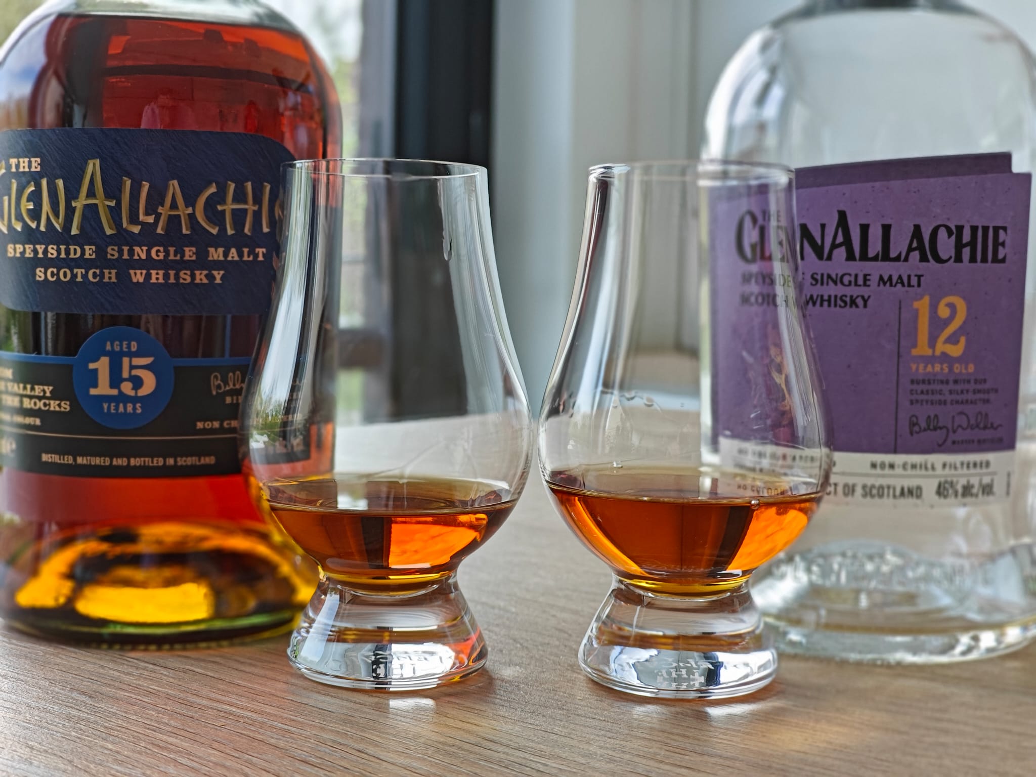 Today we’re comparing two sherried drams, which in age are very close to each other, but how do the flavours compare? It’s not the fairest comparison, as you can tell from the pictures. One bottle was a bottle kill, the other was a neck pour. The 12 was the 2025 release, the 15 is the 2022 release… Is it ideal? Maybe not, but these were the bottles I had and I wanted to do this head to head, before killing of the GlenAllachie 12…